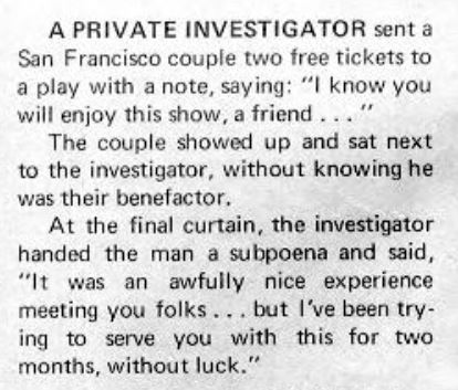 the final curtain, the investigator handed the man a subpoena and said, “It was